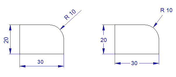 These dimensions are defined by selecting an arc or circle and locating the dimension text. Additional options for radius dimensions are:
