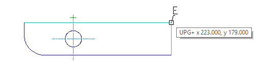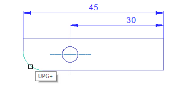 Horizontal, vertical or parallel dimensions are updated automatically, if both dimensioned points are selected within one 3D view, at 2D objects. Detection of updatable location is signaled in cursor tool-tip. In front of coordinates, UPG+ is displayed. If one dimensioned point is not located at 2D object exported from 3D, or if location is not within the same view, the created dimension is not updatable.