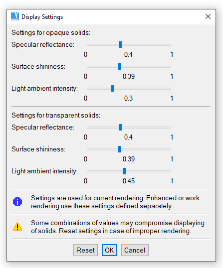 The settings are different for shaded solids and for transparent solids.