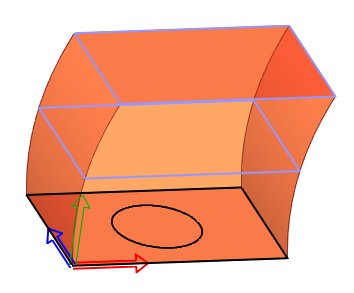 If the top plane contains only one point and patches converge into this point, then normal of patches edges at the point location is parallel to normal of the top plane. Following examples show definition of tangent direction. Here, a rectangle is connected with a single point at the top sketching plane.