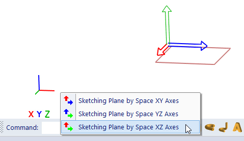 Selection of axes. This pop-up menu is displayed if 3D space is empty. Sketching plane corresponding to menu item is highlighted. Plane axes are displayed as axes of sketching plane, not as world axes.