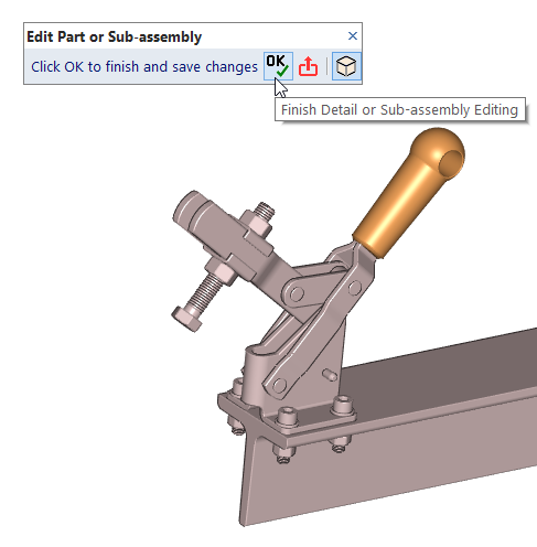 While editing parts or sub-assemblies, a toolbar is displayed. Following options are available: