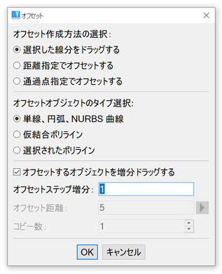 オフセットコピーは単一のオブジェクト、仮結合ポリライン、既存のポリラインに対し作成されます。