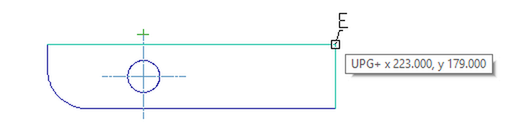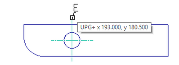 2D に書き出された 3D ビューに、寸法表示された円または円弧が属している場合、半径または直径寸法は更新されます。3D ビューからの円弧または円の位置に仕上げ記号がある場合、更新されます。また、更新可能な寸法に対応するオブジェクトの検出は、カーソル近くに UPG+ と表示されます。
