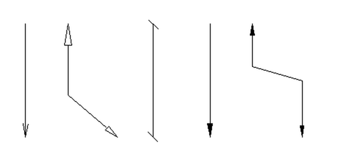 矢印は単線または多重線の最後の線分の端点が矢印になります。