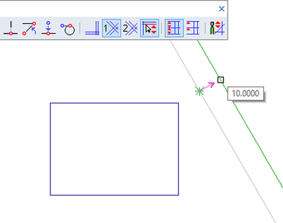 上記の点(位置)から、定義した距離よりも離れた場合、一時線は消えます。その一方で、一時線と 2D オブジェクトの交点に達するまでカーソル移動により一時線を表示します。