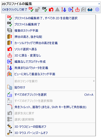 ツールバーとポップアップメニュー、ソリッドプロファイル編集