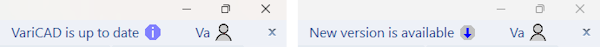 The upper right corner of the VariCAD window. VariCAD is up to date / New version is available.
