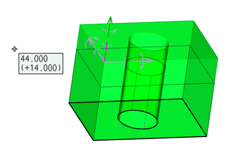 寸法の寸法引出線または矢印をクリックできます。そして、カーソル移動で寸法をドラッグできます。それと一緒に、ソリッド全体の形状が変更されます。いくつかの状況では選択した矢印の方向または対称方向で寸法を変更することもできます。