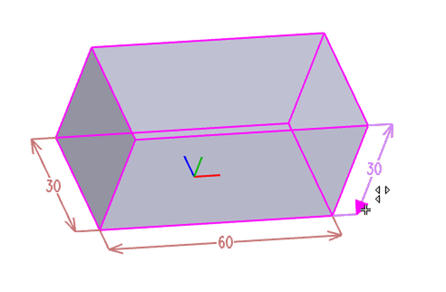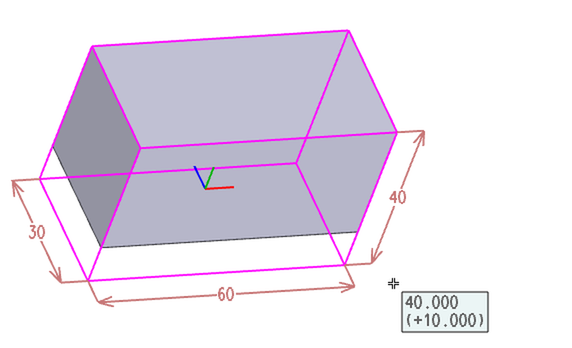 基本ソリッドを挿入し、"元に戻す"(Ctrl + Z キーまたは"元に戻す"ボタン)を選択した場合、基本ソリッドは空間寸法で表示され、これらの寸法を編集することで、寸法を変更できます。
