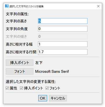 文字列の属性ウィンドウ