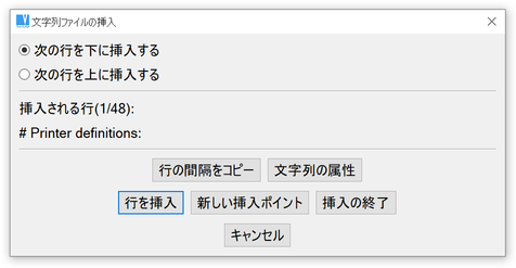 テキストファイルの挿入ウィンドウ