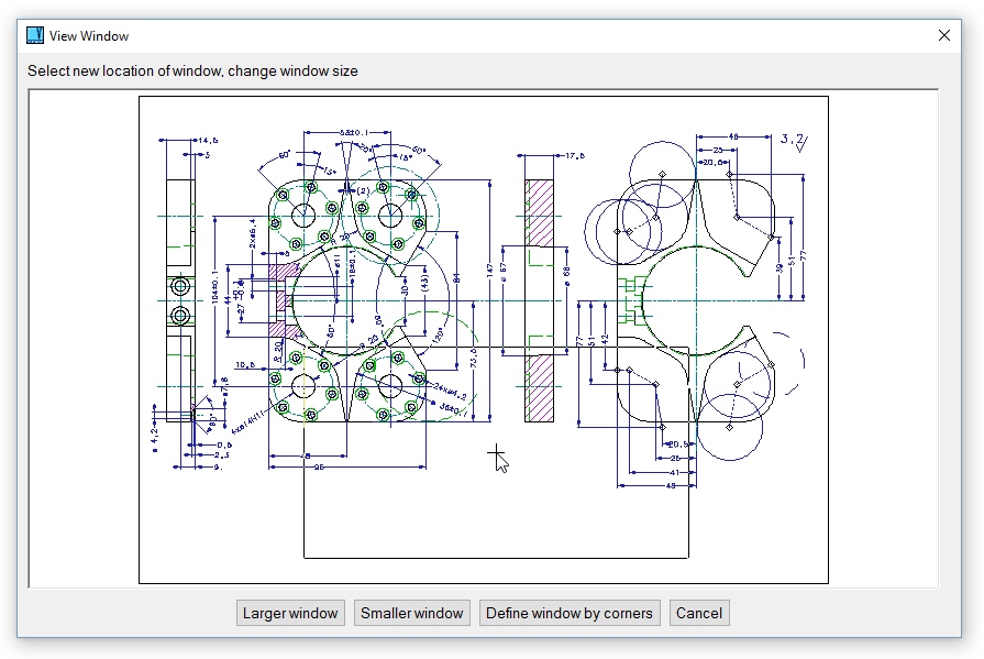 To change the view, you can use the zoom functions or use the corresponding combinations of mouse buttons and keys.