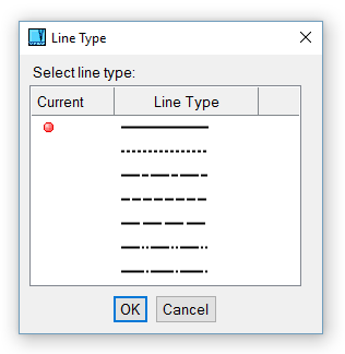 For 2D objects there are 7 line types available. Following dialog window contains list of line styles available for line style selection.