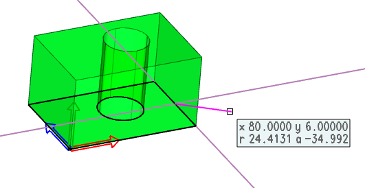 If you create a new profile further used for rotation or extrusion into 3D or if you edit an existing profile of solid, VariCAD uses 2D drawing functions at a sketching plane in 3D space. 2D drawing in 3D uses the same functions as the standard VariCAD 2D editor or 3D modeler, but they are limited only to drawing, editing or display control.