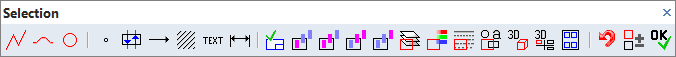Example of 2D toolbar available for selection of single objects, and additional option icons