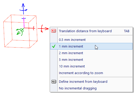 Dragging increments are defined as fixed length increments. However, you may also select dragging increments changed according to zoom. In such case, the larger zoom is, the smaller increment is used.