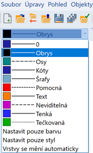 Podle barvy položek, resp. čísla barvy je přiřazena tloušťka tištěných čar. U výstupu na barevné tiskárny je možné nastavit mapování barev (záměna barvy pro tisk).