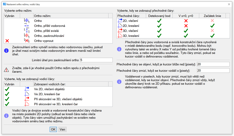 Nastavení Ortho nebo dočasné konstrukční čáry