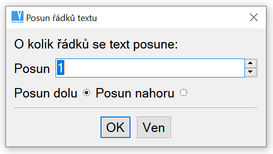 Vybrané řádky textu posune o zadaný počet řádků nahoru nebo dolů.