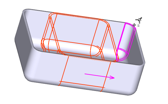 Pro detekci hran mezi příkazy stiskněte a podržte klávesu Shift. Pohyb kurzorem detekuje spojité hrany na tělesech. Kliknutí pravým tlačítkem myši do plochy umožní vybrat z pop-up menu další volby výběru hran.