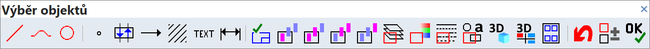 2D/3D položky lze vybírat po zadaném příkazu nebo před zadáním příkazu (mezi příkazy). Po výběru položek lze volit příkaz z ikonového menu (v některých případech) nebo po stisku pravého tlačítka myši z pop-up menu. Pro výběr jen jedné položky stačí na ni kliknout pravým tlačítkem myši. Výběr všech položek stiskem Ctrl+A. Nabídka příkazů v pop-up menu je omezená a řídí se momentální situací. Upřednostněny jsou editační a transformační funkce. Nastavení je možné příkazem "CFG".