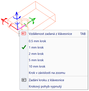 Krok vlečení lze nastavit také z klávesnice nebo v závislosti na velikosti Zoomu. Čím větší přiblížení, tím menší krok.