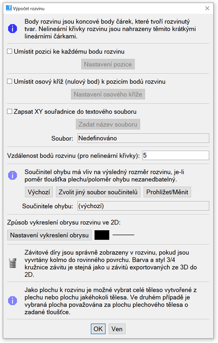 Před vlastním rozvinem se mohou nastavit možnosti výpočtu: