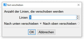 Verschiebt den Text vertikal. Die Verschiebung wird als ein Vielfaches des Zeilenabstandes angegeben. So können Lücken nach dem Löschen von Text geschlossen oder Platz zum Einfügen von Zeilen geschaffen werden.