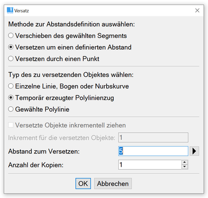 Dialog für die Versatz-Funktion