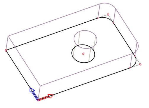 Verrundete und abgefaste Ecken werden als Rundung oder Fase erkannt, wenn die Kantenbearbeitung im 2D-Modus im Raum erfolgt ist. Bei Profilen, die im 2D-Zeichnungsmodus erstellt wurden, wird eine Rundung nur erkannt, wenn diese zwischen 2 linearen Segmenten erstellt wurde. Im Fall einer verrundeten oder abgefasten Ecke ist der Definitionspunkt der Endpunkt der ursprünglichen Ecke. Die Verbindungspunkte der Rundungen und Fasen werden anders als die ursprünglichen Linien- oder Bogensegment-Endpunkte dargestellt. Diese Verbindungspunkte können nicht für die Definition von Zwangsbedingungen gewählt werden, sie können jedoch für Messungen herangezogen werden.