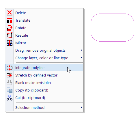 Objects created in 2D can be integrated into polylines, similarly as into blocks. Polylines also behave and are selected as single objects. Unlike blocks, you can integrate only existing lines, arcs or NURBS curves. Moreover, you can draw a new polyline instead integrating it.