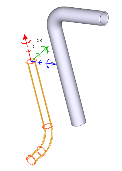 | Bend pipe around another elbow or axes intersection, start at direction of selected axis |