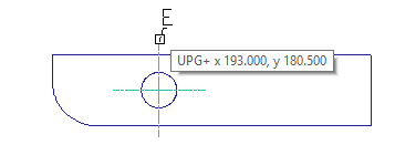 Horizontal, vertical or parallel dimensions are updated automatically, if both dimensioned points are selected within one 3D view, at 2D objects. Detection of updatable location is signaled in cursor tool-tip. In front of coordinates, UPG+ is displayed. If one dimensioned point is not located at 2D object exported from 3D, or if location is not within the same view, the created dimension is not updatable.