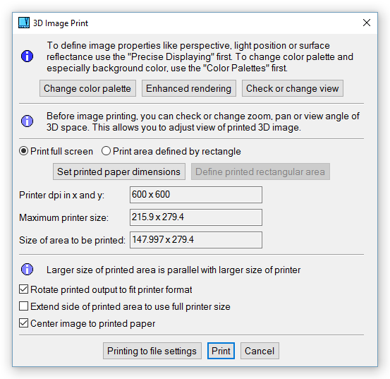 ビットマップファイルを印刷する場合、カラーパレットの変更を考慮します。- 特に背景色ですが、インストールパッケージには、"3D 印刷"と付けらたパレットを含め、いくつかのカラーパレットのセットが含まれています。お勧めは"3D 印刷"です。白色背景色は、純白色(RGB は 255、255、255)にする必要があります。
