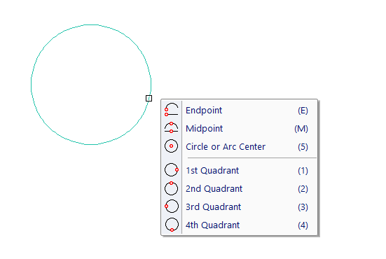 A maioria dos objetos 2D, requerem introdução de dados geométricos na forma de coordenadas X, Y. O VariCAD torna fácil o processo de selecionar localizações significativas relativamente a objetos existentes. Para selecionar um ponto de um objeto, mova o cursor por cima do objeto, até que este fique realçado. Clicar então o objeto fará selecionar o ponto mais perto do cursor. Se o cursor se aproximar de um ponto de gancho, como o ponto final ou ponto médio, surge um símbolo próximo do cursor. Clicar no momento em que o símbolo está mostrado, tem como resultado a seleção do ponto. As letras seguintes indicam ponto de gancho: