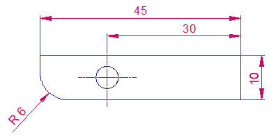As dimensões horizontais e eixos do círculo, foram ajustadas devidamente, depois do furo correspondente ter sido movido. A dimensão do raio foi automaticamente realçada e não atualizada, depois de apagar o boleado correspondente.
