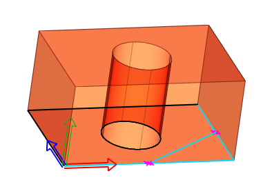 O ponto de inserção do sólido é igual ao centro dos eixos XYZ do plano base do esboço. Para sólidos criados a partir de um perfil singular, o plano base é o único plano de esboço. Durante a criação ou edição do perfil, pode transformar o plano de esboço. Juntamente com o plano, todo o sólido é também transformado. Se os perfis forem criados no plano de esboço no 3D, o ponto de inserção do sólido é definido automaticamente.