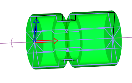 | Redefinir o eixo de rotação. O eixo de rotação, é o eixo X dos eixos do sólido e simultaneamente dos eixos do plano base de esboço. Se necessitar de alterar o perfil do sólido relativamente ao eixo de rotação, pode mover os objetos 2D. Por vezes é necessário a redefinição dos eixos no espaço. Para tal, defina o primeiro e depois o segundo ponto do eixo. Estes pontos ficam definidos no plano de esboço ativo. |